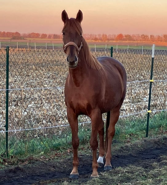 Diese hübsche Stute (ca. 163 cm) besticht durch ihr tolles Exterieur, ihre Ausstrahlung und ihren ehrlichen Charakter. Sie stammt vom erfolgreichen Anglo-Araber-Hengst Magistral und bringt sehr gute Grundgangarten mit – klar im Schritt, schwungvoll im Trab und mit einer kraftvollen Galoppade. Sie ist altersgerecht ausgebildet (kennt Sattel, Trense, Longieren, Freispringen), wurde aber bisher nicht angeritten. Sie ist sensibel, lernfreudig und lässt sich mit Ruhe und Konsequenz sehr gut führen. Hat man erst einmal ihr Vertrauen, möchte sie gefallen und ist bei Allem dabei dabei. Da sie durch unsere Hausrenovierung leider zu kurz kommt, wünsche ich mir für sie ein liebevolles Zuhause, in dem sie gefördert und beschäftigt wird. Privatverkauf Bei ernsthaftem Interesse freue ich mich über eine Nachricht.