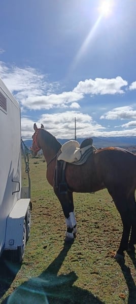 Te koop: prachtige Anglohispano-Arabische paard! Wij presenteren ons magnifieke, gecastreerde paard, geboren in 2015. Met een elegante kastanjebruine vacht en een schofthoogte van 163 cm, is dit exemplaar perfect voor wie op zoek is naar een metgezel voor recreatie en paardrijden. Zijn evenwichtige temperament en nobelheid maken hem tot een ideaal paard voor ritten en recreatieve activiteiten. Het is een goed verzorgd dier, in goede gezondheid en klaar om een nieuw thuis te vinden waar hij gewaardeerd kan worden en onvergetelijke momenten kan beleven. Hij heeft een niveau van dressuur op San Jorge, afzonderlijke en seriegewisselingen in draf en galop, pirouettes, zijgangen, overgangen van stap naar galop, stilstaan, en kan ook buigen en Spaanse pas uitvoeren. Als je meer over hem wilt weten of een bezoek wilt plannen, aarzel dan niet om contact op te nemen. Dit paard wacht op jou!