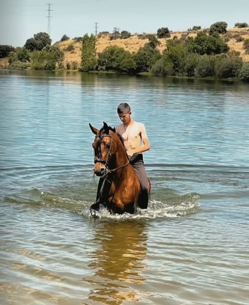 ¡Se vende hermoso caballo Anglohispanoárabe! Presentamos a nuestro magnífico caballo castrado, nacido en 2015. Con una elegante capa castaña y una alzada de 163 cm, este ejemplar es perfecto para quienes buscan un compañero para disfrutar del ocio y la equitación. Su temperamento equilibrado y su nobleza lo convierten en un caballo ideal para paseos y actividades recreativas. Es un animal bien cuidado, con buena salud y listo para encontrar un nuevo hogar donde pueda ser apreciado y disfrutar de momentos inolvidables. Tiene un nivel de doma de San Jorge, cambios de pie aislados y en series a 3 y 4 trancos, piruetas, apoyos, trocados, transiciones paso-galope, paradas, además de hacer la reverencia y el paso español. Si estás interesado en conocer más sobre él o concertar una visita, no dudes en ponerte en contacto. ¡Este caballo está esperando por ti!