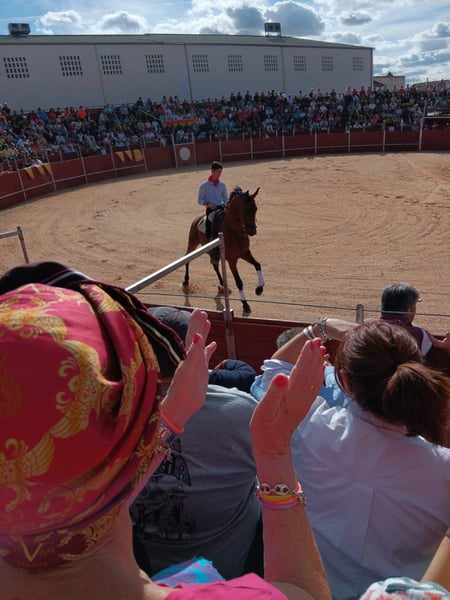 Vende un hermoso cavallo Angloispano-Arabo! Presentiamo il nostro magnifico cavallo castrato, nato nel 2015. Con un elegante mantello castano e un'altezza di 1,63 m, questo esemplare è perfetto per chi cerca un compagno per il tempo libero e l'equitazione. Il suo temperamento equilibrato e la sua nobiltà lo rendono un cavallo ideale per passeggiate e attività ricreative. È un animale ben curato, in buona salute e pronto a trovare una nuova casa dove possa essere apprezzato e vivere momenti indimenticabili. Ha un livello di doma di San Giorgio, cambi di piede isolati e in serie a 3 e 4 tratti, pirouette, appoggi, cambi di gamba, transizioni passo-galoppo, fermate, oltre a fare la reverenza e il passo spagnolo. Se sei interessato a saperne di più o a organizzare una visita, non esitare a contattarci. Questo cavallo ti sta aspettando!