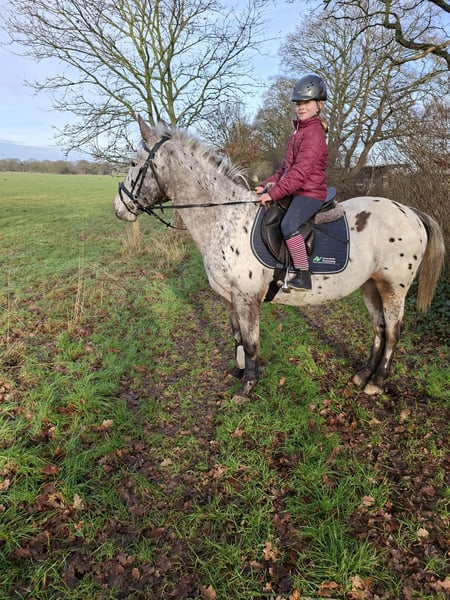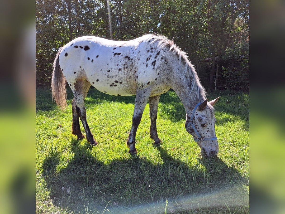 For sale by commission: Nelly, a 16-year-old, incredibly sweet Appaloosa mare approximately 15.5 hands tall. She is suitable for children to ride and knows everything that makes a great leisure horse. Whether riding alone or in a group—through the forest, on the beach, or along the road—Nelly enjoys it immensely and also rides very well in the arena or indoor riding hall, whether with pad, western saddle, English saddle, or bareback. Unfortunately, we no longer have enough time for this wonderful mare. No known health issues. Nelly does not have a health certificate but can, of course, be issued upon the buyer’s request. She is also suitable for riding lessons and is very well-behaved in handling. If interested, please contact us. Price on request, under €4,500. A trial ride costs €30, which will be deducted from the purchase price if bought.