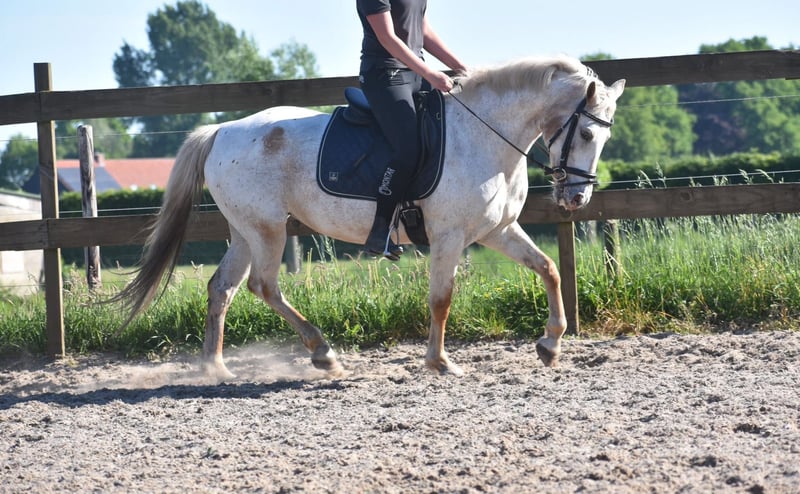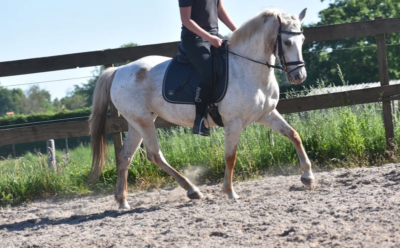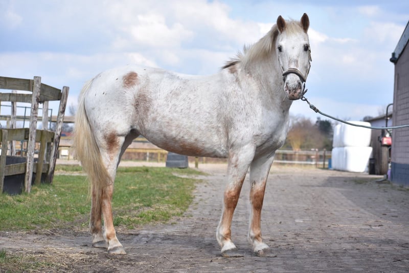 Highly trained, uniquely colored Appaloosa D/E pony mare Meet Astana, a stunning mare approximately 1.48 meters tall. She is a Quarter Appaloosa type. Born in mid-August 2007, she has extensive experience. Nevertheless, you would never guess her age! She is expected to remain healthy and active for many more years. With her distinctive coloration and sweet, engaging face, she will immediately steal your heart! Astana boasts the rare Varnish Roan Appaloosa coat pattern. Astana is very well-behaved and cooperative here. She is suitable for less experienced riders but also offers enough challenge for advanced riders. Under saddle, she is a reliable and versatile pony, but she also excels on the ground! She loves groundwork and liberty dressage, and can already give her hoof and rear on command. She calmly participates in riding lessons and responds obediently. A 7-year-old child has ridden her independently. Thanks to her baroque build and gentle nature, she is also an ideal family horse. Additionally, she is traffic-safe and trailer-trained. Includes a very recent health and veterinary inspection report, including blood test. Are you ready to work with this extraordinary mare? Don’t miss this opportunity! Includes recent veterinary report with blood test, fully approved for sport with no remarks.