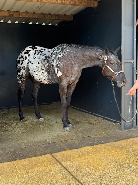 Diese bildhübsche Appaloosa-Stute mit der außergewöhnlichen Black-Blanket-Färbung wurde 2022 geboren und misst aktuell etwa 156 cm. Sie verfügt über einen Equidenpass und besticht durch ihr korrektes Gebäude sowie einen besonders lieben und menschenbezogenen Charakter. Die junge Stute befindet sich noch in der Entwicklung, zeigt sich jedoch bereits jetzt sehr cool, verspielt und lernwillig. Sie ist absolut geräuschunempfindlich, verschmust und zeigt sich im täglichen Umgang sowie bei Tierarzt und Hufschmied stets brav und unkompliziert. Sie kennt sowohl Boxenhaltung als auch Weidegang, ist regelmäßig entwurmt und geimpft und wurde mit viel Geduld und Ruhe ausgebildet. Aktuell befindet die Stute sich im Beritt und geht artig Schritt und Trab unter dem Sattel. Auch an der Doppellonge und bei der Bodenarbeit arbeitet sie motiviert mit. Ihre taktreinen, ansprechenden Gangarten machen sie zu einer interessanten Nachwuchspartnerin für vielseitige Einsätze - sei es im Pleasure, Ranch Riding oder im Trail. Diese junge Dame ist der perfekte Partner für Reiter, die den Weg vom Jungpferd zum verlässlichen Freizeit- oder Turnierpartner gemeinsam gehen möchten. Sie bringt das Potenzial und die Einstellung mit, um ein echter Allrounder zu werden. Beritt ist bis November inklusive.
