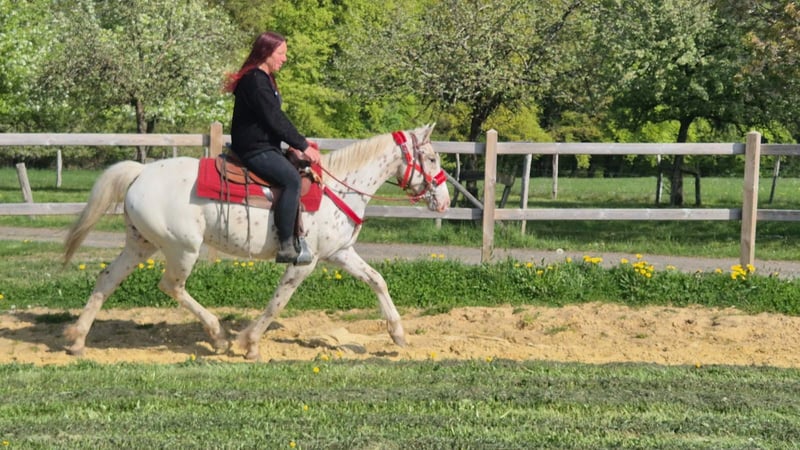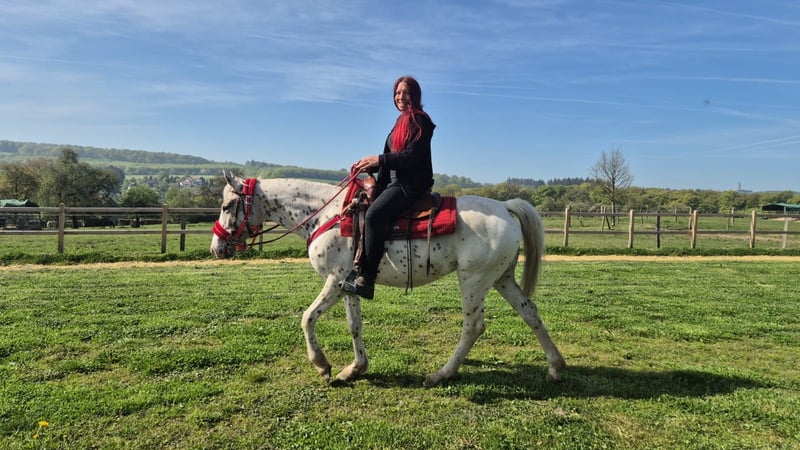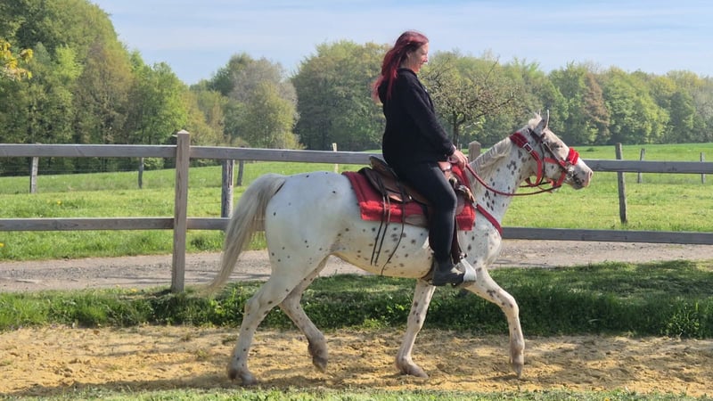 Name: Belle Appi-Stute Alter: 5 Jahre Stockmaß: ca. 1,49 m Preis: 5400,- AKU: Vorhanden ✨ Beschreibung:Belle ist eine wunderschöne Appaloosa Stute mit einem lieben, ausgeglichenen und ehrlichen Charakter. Im täglichen Umgang zeigt sie sich sehr brav, ruhig und absolut unkompliziert. Sie ist menschenbezogen, aufmerksam und angenehm zu händeln. Auch unter dem Sattel überzeugt sie durch ihre Gelassenheit und ihre Zuverlässigkeit. Belle ist brav beim Reiten, leicht zu sitzen und gibt ihrem Reiter stets ein sicheres Gefühl. Sie arbeitet motiviert mit und bringt für ihr Alter bereits eine tolle Einstellung sowie starke Nerven mit. Perfekt für:Reiterinnen und Reiter, die eine liebe, ehrliche und unkomplizierte Stute suchen – ideal für Freizeit, Ausritte und weitere Förderung. Pflege & Betreuung:– Regelmäßig entwurmt– Schmied gepflegt– Osteopathisch betreut Zusatzangebote:Westernsättel, Trensen und weiteres Zubehör erhältlich. Service:– Transport kann organisiert werden– 3 Monate Umtauschrecht Proberitt:– 35 € (jedes weitere Pferd 25 €)– Wird beim Kauf am selben Tag angerechnet Preisnachlass bei sofortiger Mitnahme oder Transport am gleichen Tag:– Kategorie 1: 100 €– Kategorie 2 (ab 5.000 €): 250 € Telefon: 0171 – 4001968 Täglich erreichbar von 8–20 Uhr