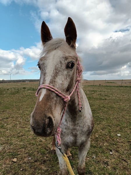 Liebe zuverlässige 5 jährige Appaloosa Stute Tolle Farbe mit einem tollen Charakter. Leider hat sie mit der Herde ein Problem und wird nicht akzeptiert. Schmiede und Verladefromm.