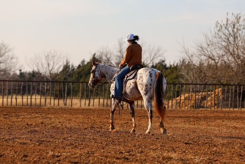 ⚜️𝐓𝐇𝐄 𝓗𝓮𝓻𝓲𝓽𝓪𝓰𝓮 𝐖𝐢𝐧𝐭𝐞𝐫 𝓒𝓵𝓪𝓼𝓼𝓲𝓬⚜️ Happening now thru MONDAY | DECEMBER 29th - Available EXCLUSIVELY on HorseBid's website! For more details and to register visit: www.Horsebid.com CONSIGNOR CONTACT: Dolago Performance Horses 860-942-0623 LOCATION: Perry, OK BREED: Appaloosa REGISTERED: Yes REGISTERED NAME: ALITA RED SUNSHINE COLOR: Appaloosa HEIGHT: 14.3 AGE: 6 GENDER: Mare Holly is a beautiful appaloosa mare with tons of chrome, eye appeal, and class. She’s the kind that turns heads everywhere she goes and backs it up with a great mind and a solid foundation. Holly has been going well in the roping pen and has been hauled to jackpots, where she shows plenty of rate, a big stop, and the ability to read cattle. She’s athletic, responsive, and has a lot of try, making her fun to ride and easy to get along with. Holly is a truly well rounded mare that has been ridden both English and western. We’ve recently started her over fences and she’s taken right to it, showing a willing attitude and seeming to genuinely enjoy jumping. She’s also been patterned on the barrels and poles, giving her a solid start for someone wanting a versatile performance prospect or an all around using horse. Outside of the arena, Holly really shines. She’s excellent on the trail and is just as comfortable riding out alone as she is in a group. She crosses water, logs, bridges, and other trail obstacles with no hesitation and takes everything in stride. She’s confident in new environments and stays level headed whether you’re riding at home or hauling her somewhere new. Holly has a one hand neck rein, has a smooth lope with pretty, balanced circles, and is soft in the bridle. She’s been exposed to a variety of situations and handles it all with a great attitude. Whether you’re looking for a rope horse, a ranch style all around, a fun jackpot horse, or something you can switch gears with and enjoy English, western, or trail riding, Holly checks a lot of boxes.