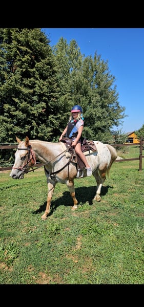 Available is a beautiful mare who will turn 9 years old this May. She is a reliable and well-schooled trail horse, suitable for both recreational riding and more experienced riders. She is fearless and well-accustomed to various situations (traffic, water, other horses, trailers, and farrier work). Appaloosa breed with a full pedigree.