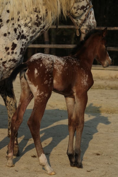 Arlina is a strong, correct and well-built Appaloosa filly, born 22.3.2026. Early season filly with a powerful start and excellent first impression. - Barn name: Arlina - ApHC pedigree - registered name pending. - Gender: Filly - 6 - panel N/N by parentage - Expected height: 155cm - Color: bay blanket Eye-catching color, a lovely and curious filly, with correct conformation and a strong, well-balanced build. In excellent health with no known issues. Both parents are 6 - panel N/N tested. By the time she's weaned, she'll be used to people, she'll know foal's ABC. She'll be equipped with Passport and Pedigree by ApHC. She'll be growing in environment which would desensitize her for all kinds of actions - used to people, dogs, tractors, noise, cars and other everyday situations on a ranch. She'll be used to being stabled in and to live on a pasture with other horses. Video will be uploaded soon! To see more pictures, check her album "Arlina" on our FB page: (open link on computer!) https://www.facebook.com/media/set?vanity=spotsndotsranch&set=a.2023154795209271 Price: 4,500 € Early reservation for her can be made with a contract and deposit. She'll be ready to be picked up in September/October. SIRE BR Rock Me Juro is our young stallion, a horse with an excellent mind and calm temperament. Standing 160 cm tall, he combines size with a very gentle character. He is a fewspot with the following genetics: E/e A/a LP/LP PATN1/n (no grey). Pedigree: https://www.allbreedpedigree.com/rb+rock+me+juro DAM Out of our outstanding mare Jackie (Star Bubble), a bay leopard. She's our best mare, big and strong built and a very solid temperament. Pedigree: https://www.allbreedpedigree.com/star+bubble2 ******** Spots N Dots Ranch is home to colorful Appaloosas and Quarter Horses bred for soundness, smooth rides, and solid minds. We don’t chase ribbons — we raise horses with heart, health, and soul. Dotted with Excellence. About us - we are a small family ranch, we treat our animals as family members, and we are always prepared to make agreements with our costumers to satisfy both parties. We have many experiences with selling/purchasing horses abroad, so we are happy to assist buyers with transport organization and provide information to help secure the best possible international transportation options. Our horses can be found all around Europe (Germany, Hungary, Croatia, Poland, Greece, Bulgaria, Czech Republic, Norway ..) Feel free to scroll down our Youtube chanel to get a little idea of our work and animals: https://www.youtube.com/@spotsndotsranch9658/videos ********* We are located in 8254 Globoko, Slovenia. You can message us on +38631748061 (Whatsapp) or send an e-mail to spotsndotsranch@gmail.com You can also message or follow us on Facebook - Spots N Dots Ranch We respond fastest via WhatsApp or Facebook. Serious inquiries only please!