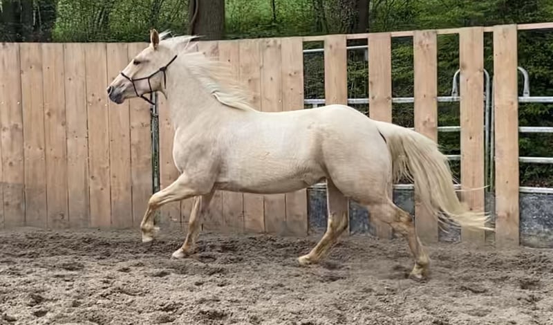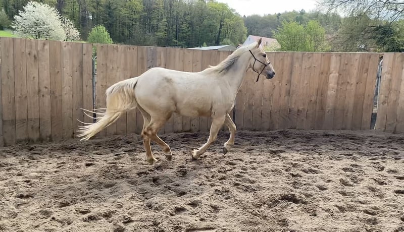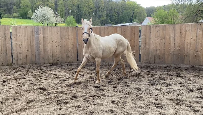 Verkaufe jungen Appaloosa-Wallach, geb. 2023, in beeindruckendem Palomino-Farbton. Das Pferd wird mindestens ein Stockmaß von 155 cm erreichen. Las Vegas ist gut sozialisiert, steht im Moment in einer 4-er Herde 24/7 im Wald, lässt sich gut Händeln und ist selbstverständlich brav beim TA, Schmied und verladefromm. Seine freundliche und aufgeschlossene Art macht ihn zu einem tollen Freizeitpartner. Las Vegas verfügt über das amerikanische CoR und ist über die Elten 5 Panel n/n. Neben seinem schicken Äußeren, verfügt er über gute Hufe, stabile Röhrbeine und zeigt - ebensowenig wie seine Eltern - keinerlei Tendez zu Allergien. Privatverkauf.