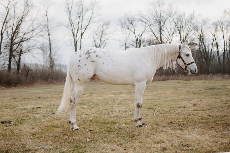 Silver, 5 jaar oud, 14.3 hh, zwart-witte luipaardkleurige ApHC-gelding