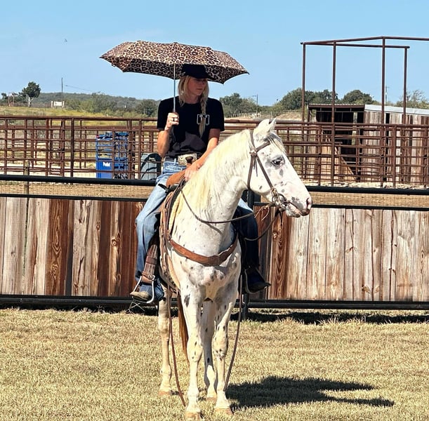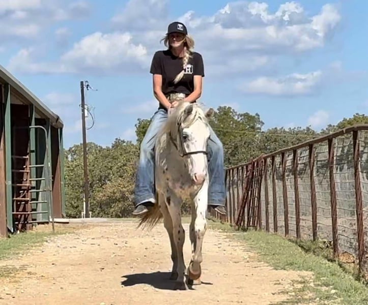 ONLINE AUCTION Place your bids at www.PlatinumEquineAuction.com Starting Bid $3500 Auction ends November 10th, 2024 Need a new saddle? Check out White Rock Saddles on our website or Facebook! Flashy meets Personality. Meet Cowtown – a 2021 Appaloosa gelding standing 15 hands tall. Cowtown is the sweetest horse you will ever meet with tons of personality and the gentlest demeanor you could ask for. He is one of the most willing and good natured young horses we have ever had the pleasure of owning. Cowtown is started right and going well. He rides outside, over the obstacles, down the trails, out on the ranch and gathers the cows like a champ. He is independent and confident and will have fun doing any task you ask him to do. He is smooth and easy to ride. He saddles up like a gentleman every ride and is the first to meet you at the gate ready to get any type of attention he can get. Cowtown is playful and loves the balls, tarps, bags, blankets, you name it he will play with it. He is well mannered, hauls, stalls, pastures, bathes, etc. He learns quickly and remembers what you teach him. Cowtown has one of the best minds and could go any direction! He is sound and straight/clean legged. FMI call/text Holland Horse Co. Chanel 559-978-6320 for more information. Located in Jacksboro, TX. We are happy to answer questions and help arrange shipping nationwide. ONLINE AUCTION Place your bids at www.PlatinumEquineAuction.com Starting Bid $3500 Auction ends November 10th, 2024 Need a new saddle? Check out White Rock Saddles on our website or Facebook!
