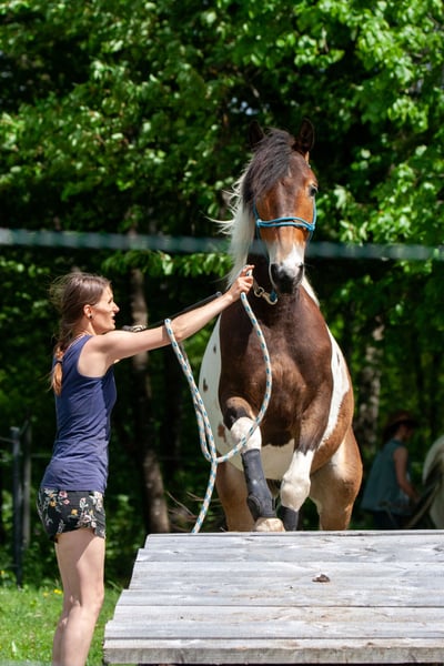 Wunderschöner 5-jähriger Pinto-Wallach (Mix: Appaloosa-Araber-Kreuzung) zu verkaufen. Nur an erfahrene Reiter mit ausreichenden Kenntnissen zur weiteren Ausbildung. Beritt wurde zwar angefangen (nach Horsemanship), jedoch aufgrund mangelnder Zeit und Kenntnisse konnte die Ausbildung selbst nicht fortgesetzt werden. Da er nun seit fast 1 Jahr steht, muss man unbedingt wieder von Null anfangen und schauen wo man mit dem Training ansetzt. Er braucht jemanden, der ausreichend Zeit hat, wirklich regelmäßig mit ihm zu arbeiten und sich durchsetzen kann, ihm genügend Sicherheit und Ruhe vermittelt. Er hat sehr viel Potenzial und lernt sehr schnell, braucht aber jemanden der sich durchsetzen kann. Der Preis ist 4.000€ VB - Platz vor Preis!