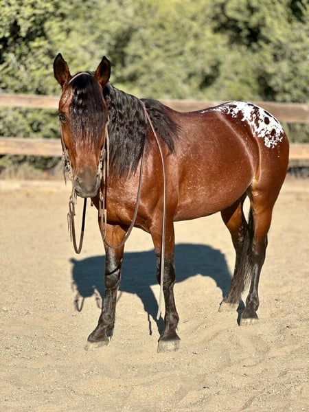 ONLINE AUCTION Place your bids at www.PlatinumEquineAuction.com Starting Bid $3500 Auction ends November 10th, 2024 Need a new saddle? Check out White Rock Saddles on our website or Facebook! Loki is a 5yr old Appaloosa cross, standing at 13.2HH. This guy may be the size of a pony but his deamor and handle are all horse! If he doesn’t make you drool looking at him with those luscious locks his kind heart and willing to please personality will!! Loki has been rode all over the trails and is very familiar with wildlife, vehicles and pedestrians. He takes it all in stride and always on his best behavior. He has smooth gaits for his little stride, and gives to pressure, both in the bridle, as well as leg pressure. He pivots his shoulders, side passes, and reverses all at a light touch. Lopes each way very effortlessly and has an amazing collected stop. He’s easy to catch, lets you clip and bathe him no problem. He stands quietly for the farrier and loads in any trailer without hesitation. We have carried the tarp and flag on him and he could care less. He has a more whoa than go type of way about him, but he will go anywhere you want without having to always plug on him. This little guy has all the potential in the world to go any direction his new owner would like to finish him out in! Trail course competitions, versatility shows, or I also think he would make an exceptional English pony! He’s calm, and gentle, suiting the entire family or lesson programs! Don’t miss out on a rare pony like Loki! He is located in Bitterwater California. For more information or to schedule a time to come see him please contact Cheyenne Rey 831-537-8746. ONLINE AUCTION Place your bids at www.PlatinumEquineAuction.com Starting Bid $3500 Auction ends November 10th, 2024 Need a new saddle? Check out White Rock Saddles on our website or Facebook!
