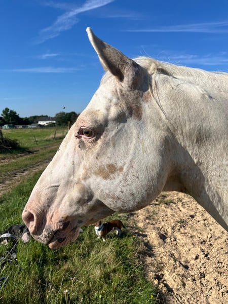 FH Special Jasper ist ein bildhübscher Appaloosa Wallach, geboren im Oktober 2018, mit einer außergewöhnlichen Few-Spot-Farbe und einem Stockmaß von ca. 154 cm. Er überzeugt nicht nur durch seine besondere Optik, sondern auch durch ein korrektes Gebäude, ein solides, kräftiges Fundament sowie eine kompakte und gut bemuskelte Erscheinung mit starken Knochen. Der Wallach ist barhuf, gesund und hatte bisher keinerlei Erkrankungen. Durch seine Eltern ist er 5-Panel n/n getestet. Der Umgang mit Tierarzt und Hufschmied ist ihm bestens vertraut, ebenso wie die regelmäßige Entwurmung. Jasper kennt sowohl Offenstall- als auch Boxenhaltung und ist im gemischten Herdenverband aufgewachsen. Er zeigt sich im Alltag sehr unkompliziert und ist verladefromm. Besonders hervorzuheben ist sein liebevoller Charakter. Der Wallach ist sehr menschenbezogen, ruhig, brav und ausgeglichen. Dabei ist er stets bemüht, alles richtig zu machen, lernt schnell und bringt ein angenehmes, ausgeglichenes Temperament mit. Unter dem Sattel zeigt Jasper sich zuverlässig und überzeugt mit weichen, angenehmen Grundgangarten. Er geht brav alleine ins Gelände und eignet sich dadurch ideal für Anfänger sowie Wiedereinsteiger. Jasper verfügt über eine solide Westernausbildung, wurde jedoch bisher nicht auf Turnieren vorgestellt. Seine gute Abstammung sowie sein "Charakter aus Gold" machen ihn zu einem tollen Freizeitpartner für viele schöne und entspannte Stunden im Sattel. Die Papiere des AphC liegen selbstverständlich vor.