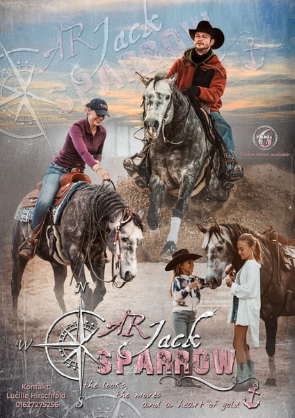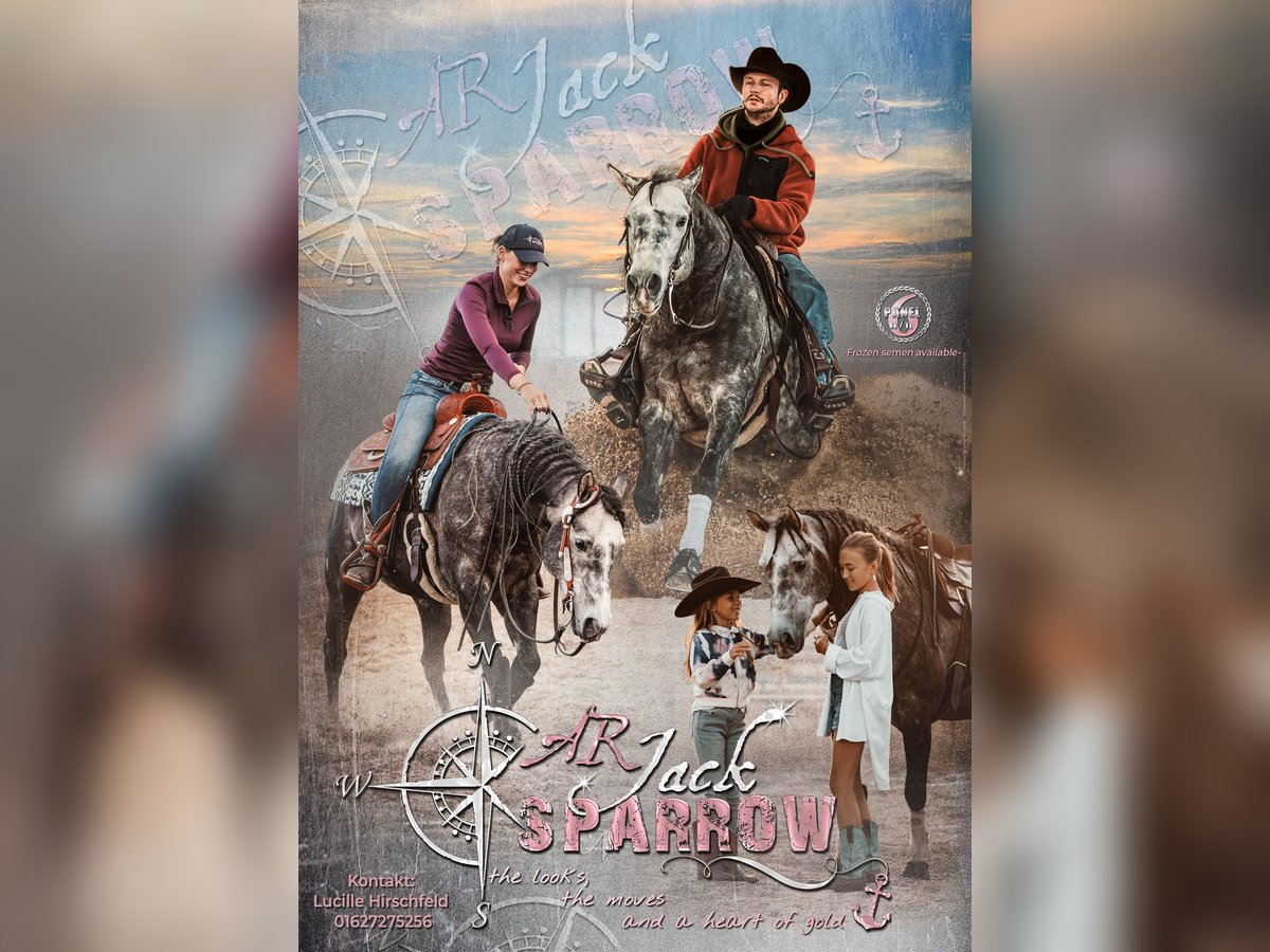 Sparrow steht im Natursprung noch 2 Stuten zur Verfügung. AR Jack Sparrow is a great natural mover who is very talented on all maneuvers. In addition, he has a correct fundament. His disposition is cool and he has a very easy mind. For your next Reining, Cutting or Ranch Riding prospect, he will be the right pick for your mare. He has the looks, the moves and a heart of gold! Genetics: 5 panel N/N, MYHM/N Color: OLWS N/N, Aa, ee, Cr/N, ndl/ndl Discipline: Reining, Cutting, Ranch Riding Available semen: Frozen Live foal guarantee (LFG): Yes Color: Gray Sparrow wurde in Italien gezüchtet und ist seit 2021 bei mir zu Hause. Er wurde Reining ausgebildet, zeigt sich dabei sehr talentiert an den Manövern. Er ist ein toller Beweger mit einem kraftvollen Ausdruck und bequemen Gängen. Dem Menschen gegenüber ist er sehr zugewandt, verspielt und zeigt viel Interesse an der Zusammenarbeit mit seinem Menschen. Ihn bringt so schnell nichts aus der Ruhe, dennoch ist er fein zu reiten. Kurz zusammengefasst : He’s got the looks, the moves and a heart of gold!