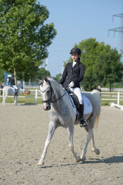 💫Einmalige Gelegenheit 💫 …nur wenn es wirklich passt, darf mein Caiylani el Zahra in ein neues Zuhause übersiedeln - absolut kein Notverkauf. Caiylani el Zahra Pintabian Porzellanschecke 99,22% 1.55 Stockmaß CA, SCID & LFS frei Gekört: ÖAZV, ZFDP, ÖZP & ZSSE HLP SIEGER 2021 Stadl Paura Er hat keine mir bekannten Erkrankungen Ankaufsuntersuchung jederzeit möglich Ich habe es viele Jahre probiert für ihn den passenden Reiter zu finden, der ihn im Sport fördern kann und möchte. Leider hat es einfach nie gepasst. Ich selbst bin eine reine Freizeitreiterin und kann ihn nicht seinem Vermögen nach fördern. Da er bei mir nur herumsteht möchte ich für ihn das passende Zuhause finden. Auch ein „zur Verfügung“ stellen würde für mich in Frage kommen, bei entsprechender Voraussetzung. Caiylani ist ein unglaublich lieber und braver Hengst. Nur Turnieratmosphäre stresst ihn sehr und er bräuchte einfach eine erfahrene Hand, die ihn daran gewöhnt. Er wird auf den Videos von 2 Kindern geritten (13+18) und ist wie gesagt völlig unproblematisch. Durch seine enorme Schulterfreiheit und sein Versammlungstalent ist er der Inbegriff des arabischen Dressurpferdes. Ich sehe ihn auch sehr in der Working Equitation. Wir waren mit ihm auf der Vielseitigkeitsstrecke & auch am Sprung zeigt er sich sehr talentiert. Er hat ein großes Herz und mit seinem Reiter dem er vertraut geht er durchs Feuer und zurück. Ich würde ihn auch als Wallach hergeben. Der zukünftige Besitzer muss nur einverstanden sein dass ich sein TG Depot ein Leben lang selbst nutzen darf. Ich habe meinen Hengst selbst gezogen. Er hat 2021 die HLP in Stadl Paura mit 8,27 haushoch gewonnen und ist 4fach gekört Anerkannt für die Trakehnerzucht und Sportponyzüchter… ich bin sehr stolz auf ihn. Seine überragende Qualität hat er schon mehrfach bewiesen und wurde von denen, die ein Pferd auf seine Reitpferdepoints hin beurteilen sehr gelobt. Er deckt Stuten frei auf der Weide u könnte auch das ganze Jahr hindurch mit den Stuten laufen. Er ist sehr lieb mit ihnen. Seinen Fohlen gibt er durchgängig seinen arabischen Flair, überdurchschnittliche Gänge und Korrektheit mit. Alle sind sehr intelligent und richtige Schmuser. Bisher hat jeder sehr viel Freude mit seinen Nachkommen. 2 habe ich aktuell bei mir im Stall stehen. Wenn du meinem Caiylani das optimale zuhause geben möchtest, melde dich bei mir. Ein unverbindliches kennenlernen ist jederzeit möglich. Diese Entscheidung treffe ich gegen mein Herzgefühl sondern rein rational im Interesse des Pferdes. Wir freuen uns auf dich