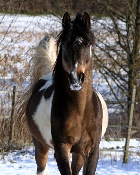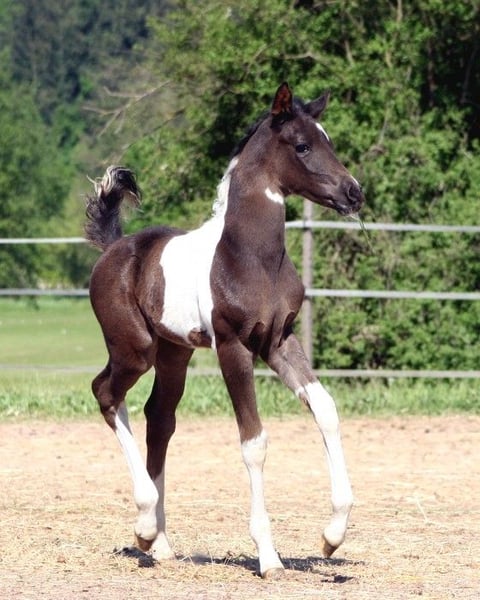 Por motivos personales, nos vemos en la necesidad de buscar un nuevo hogar para nuestro semental Shai van Coloured. Shai ha sido fundamental en nuestra cría, aportando excelentes descendientes con diferentes y excelentes yeguas. No solo destacan por su belleza y buen tipo, sino sobre todo por su carácter y su disposición para aprender bajo la silla. Podríamos volver a considerarlo para la reproducción. Está registrado en el ZfdP en la categoría HB1 para árabes de sangre cruzada, y sería fácilmente inscribible allí nuevamente. También bajo la silla, seguramente se sentiría cómodo otra vez. Gracias a su carácter honesto y confiable, es muy fácil de manejar y de mantener en la rutina diaria. Puede estar en compañía de yeguas y, posiblemente, integrarse en una manada de yeguas. Solo entregamos el semental a manos experimentadas en la cría de caballos. Además, es imprescindible contar con buenas instalaciones para su alojamiento. Las últimas cuatro fotos muestran algunos de sus potros. En cuanto al color, Shai puede transmitir todas las combinaciones de colores con yeguas de un solo color, incluyendo Tobiano y Cremello.