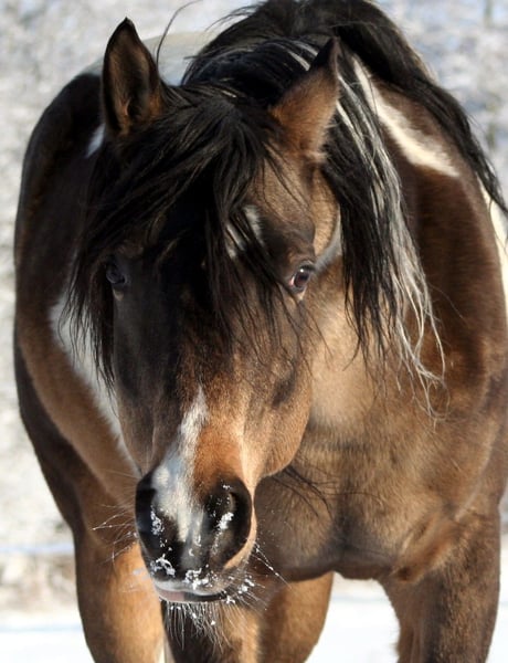 Wegen privater Umstände sind wir gezwungen für unseren Hengst Shai van Coloured ein neues Zuhause zu finden. Shai hat unsere Zucht ausgemacht und aus unterschiedlichen Stuten hervorragende Nachzucht gebracht, die nicht nur optisch mit schönem Typ geprägt waren, sondern die vor allen Dingen charakterlich und unter dem Sattel mit ihrer Lernbereitschaft überzeugt haben. Wir könnten ihn uns durchaus nochmal in der Zucht vorstellen. Er war beim ZfdP im HB1 für arab. Partbred geführt und wäre da auch wieder ohne weiteres eintragungsfähig. Auch unter dem Sattel würde er sich bestimmt wieder wohl fühlen. Durch seinen tollen grundehrlichen Charakter ist er im täglichen Umgang und in der Haltung absolut problemlos. Steht und läuft neben Stuten und könnte u.U. auch in eine Stutenherde integriert werden. Wir geben den Hengst nur in hengsterfahrene Hände ab. Ebenso ist eine gute Hengsthaltungsmöglichkeit absolute Voraussetzung. Die letzten 4 Fotos zeigen ein paar seiner Fohlen. Farblich kann Shai mit einfarbigen Stuten alles an Farbkombinationen mit Tobiano und Cremegen vererben.