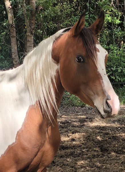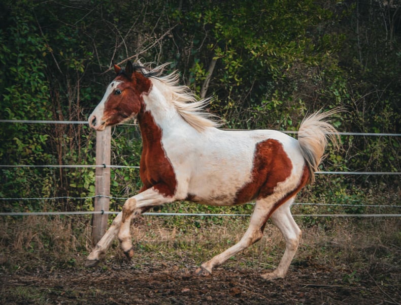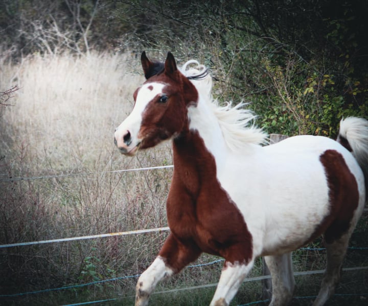 Étalon demi-sang arabe pleins papiers pie bai tobiano "Pintabian" 3 ans très bien manipulé, gentil, froid, bien dans sa tête, calme et discipliné Monte en van Non debourré À jour de vaccins, vermifuge et maréchal Toise environ 1m50 Heterozigote sur le tobiano Père qualifié en 100km* ismael de l'uriere Mère Bint Nafeesah par oulde kercha (Horr) Disponible en juin Situé dans le gard (30) Livraison possible