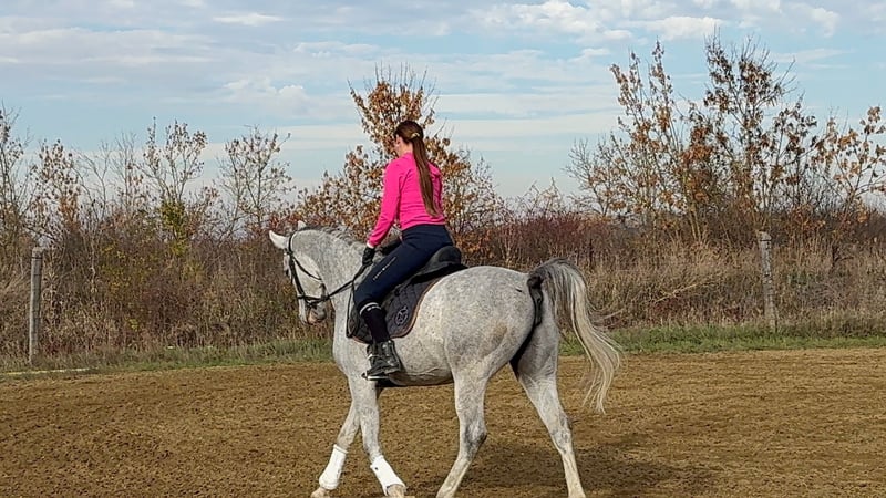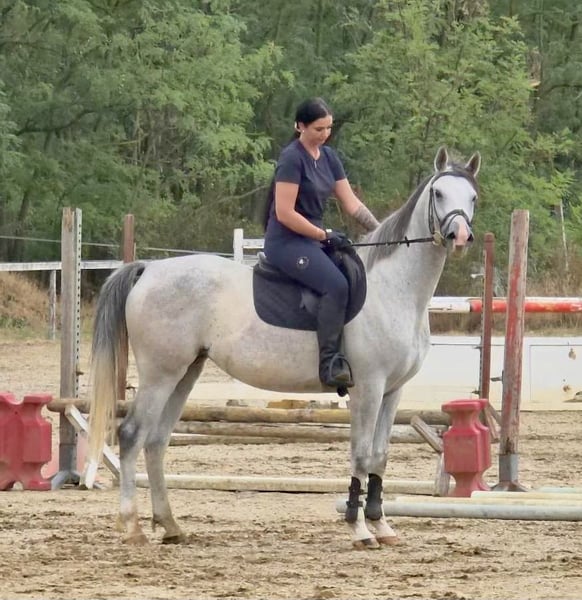 Szofi, Araberstute, 5 Jahre alt, ca. 163 cm Stockmaß. Sie war im Springreiten im Turniersport eingesetzt und springt derzeit sicher bis 115 cm, mit guter Technik und schwungvollen Bewegungen. Aufgrund ihrer Abstammung und ihres Körperbaus ist sie sowohl für Distanzreiten, Springreiten als auch Dressur geeignet und verfügt über ausgezeichnetes sportliches Potenzial. Eine sehr temperamentvolle, arbeitsfreudige Stute mit gutem Nervenkostüm, dabei freundlich und kooperativ im Umgang. Derzeit tragend von Coronell Z, was diese Anpaarung auch aus züchterischer Sicht besonders wertvoll macht. Geeignet sowohl für Sport- als auch Zuchtzwecke, besonders empfohlen für Distanzreiten und den langfristigen sportlichen Einsatz. Standort: Ungarn, Debrecen WhatsApp: +36 30 368 1990