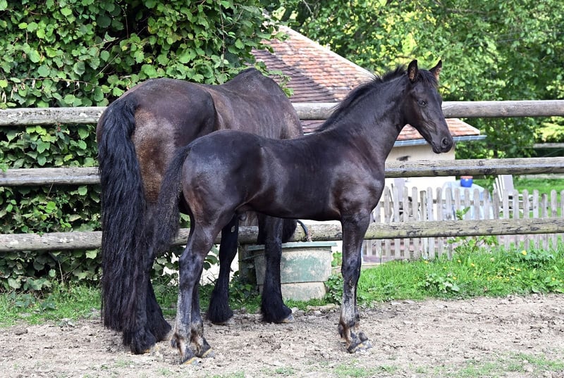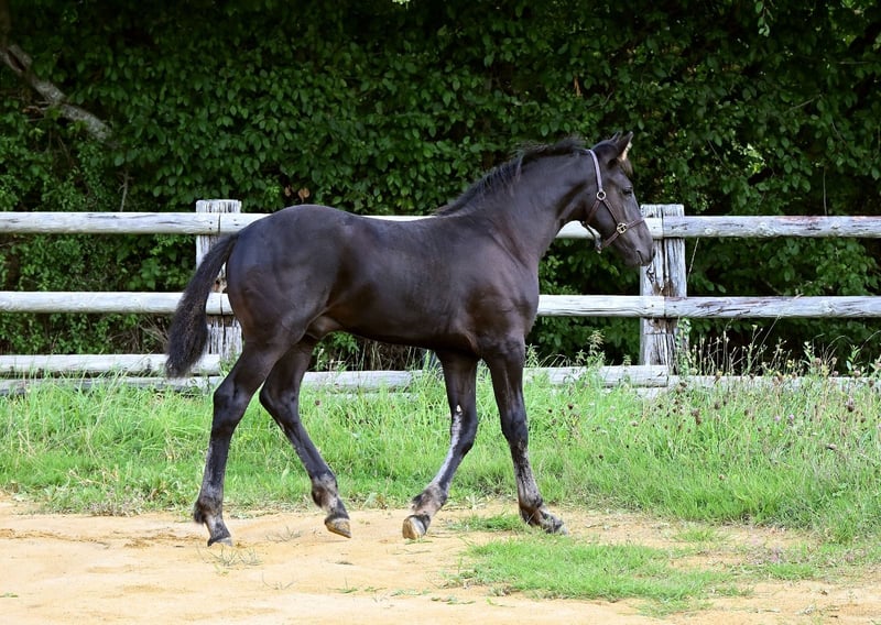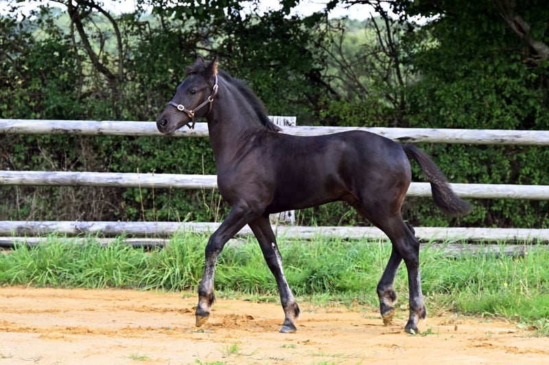 Chams ist ein Hengstfohlen, geboren im Mai 2025. Sein Vater ist der zugelassene Hengst Hermès Look DP, seine Mutter eine Friesenstute namens Adeline du Perche. Chams ist gut im Umgang, alle Impfungen, Wurmkuren und Hufpflege sind aktuell. Er ist gerade erst entwöhnt und sofort verfügbar. Er vereint gute Bewegungen mit einem sehr schönen Exterieur und einem ausgeglichenen Temperament. Besichtigung nach Terminvereinbarung auf dem Gestüt möglich.