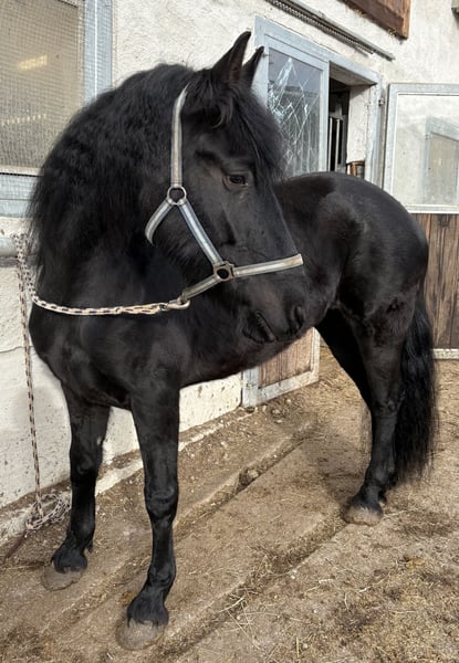 Schweren Herzens verkaufen wir unsere Stute Ina. Ina wurde am 09.03.2018 geboren und ist 7 Jahre alt. Sie ist ein Arabo-Friese, Rappe und hat ein Stockmaß von ca. 158 cm. Ina ist roh, aber halfterführig und kennt den Umgang mit Menschen. Sie ist sensibel und braucht eine klare, ruhige Führung, zeigt sich dabei jedoch sehr lernwillig und lernt schnell, wenn man fair und konsequent mit ihr arbeitet. Mit Geduld und Erfahrung bringt sie gutes Potenzial mit. Aufgrund ihres Ausbildungsstandes wird Ina nur in erfahrene und verantwortungsvolle Hände abgegeben, da uns ihr Wohl sehr am Herzen liegt. Ina ist gechippt und besitzt einen Equidenpass. Ausbildungszustand: Roh Geburtsdatum: 09.03.2018 Araboblutanteil: 29,69% Stockmaß: ca 158 cm Bei Interesse oder weiteren Fragen gerne melden.