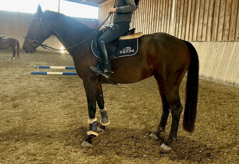 For sale is a lovely 4-year-old mare (height approximately 1.57 m). Due to a lack of time, we are looking for a new home for our young mare. She is backed and currently in further training. Unfortunately, we cannot support her as much as she deserves due to time constraints. She shows a strong willingness to learn and is very attentive. With further training, she certainly has potential for leisure riding or even show jumping. We wish for her to find a place where she can be individually further developed. Character & Traits: - People-oriented & friendly - Brave and unflinching - Eager to perform with joy in her work Field of Use: Perfectly suited as a leisure partner for someone who wants to continue working with her. Additionally, she is very interesting for breeding or show jumping due to her lineage. She is being offered solely due to time constraints, as our daughter is starting university.