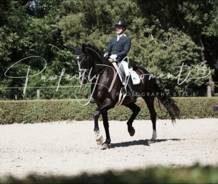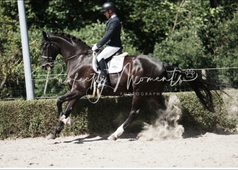 Beautiful Black Gelding – Dressage Horse For sale is an elegant and well-trained 10-year-old gelding. Nashville impresses with his impressive height of 177 cm and his attractive appearance. He is a reliable partner for dressage and has already achieved multiple wins in M* classes and placings in M** with amateurs. Nashville has a balanced temperament and is friendly in handling. He is suitable for advanced riders looking to deepen their dressage training, as well as for ambitious leisure riders seeking a dependable partner. No known health issues No current health certificate (AKU) available Location: 14621 Schönwalde-Glien If you are interested or require further information, please feel free to contact me. Trial rides are available by appointment at any time.