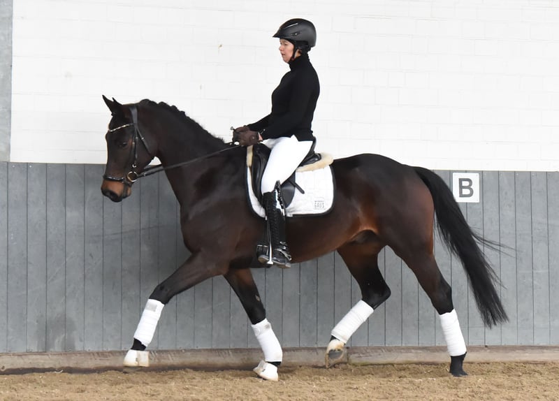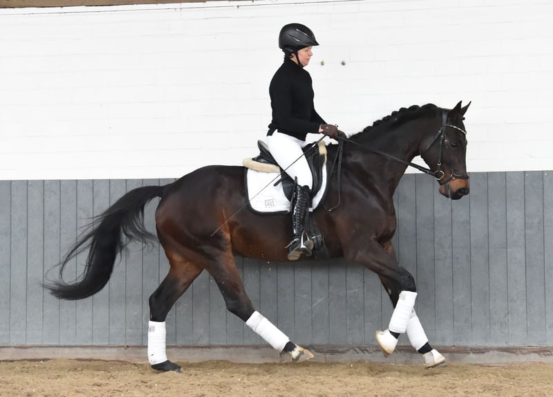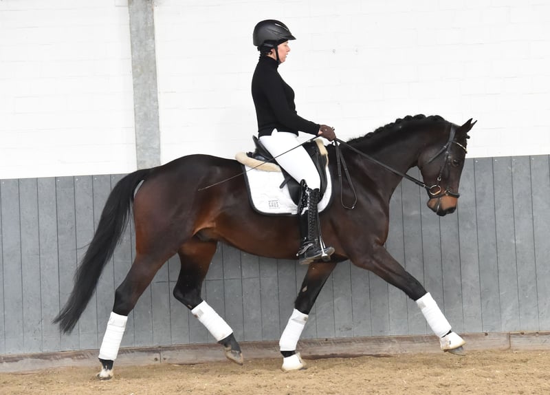 Quizmaster is ready for dressage and jumping and is a true joy for the sportily ambitious rider. He loves to be trained and is reliable in his work. In the last 2 years, Quizmaster has been ridden by two amateur riders aged 13-15 and 15-17 years. Previously, he was successfully competed up to class L in tournaments. This compact Warmblood of medium frame is comfortable to sit on. He is currently unshod and has good X-rays.