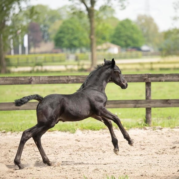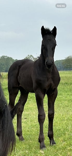 ;Mooie zwarte hengst, 2 jaar, zwart. Ruime gangen. Mooi toekomstig dressuurpaard of dekhengst Vaders vader is de bekende hengst Glamourdale Staat op dit moment in de opfok, kan daar eventueel blijven. Kan ook verhuisd worden Eventueel castreren kan ook op locatie indien gewenst