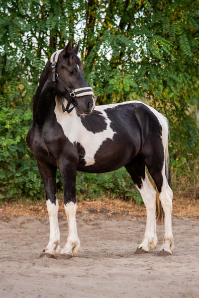 Te koop: veelbelovende hengst van het ras Barock Pinto. Voldemort U (voor vrienden Waldek) is een tweejarige gezonde hengst met een mooie beweging en een gelijkmatig gespikkelde vacht. Zijn charme wordt versterkt door zijn twee kleuren manen en staart. Hij is gewend aan verkeer, landbouwmachines en honden. Vriendelijk tijdens verzorgingsbehandelingen, regelmatig op de paddock. Walduś zal een goede keuze zijn als dekkhengst/sport- en dressuurpaard/veilige buitenritten. Te koop alleen in goede en verantwoordelijke handen! Locatie: Trzebnica 55-100, provincie Neder-Silezië Prijs: 26.000 euro