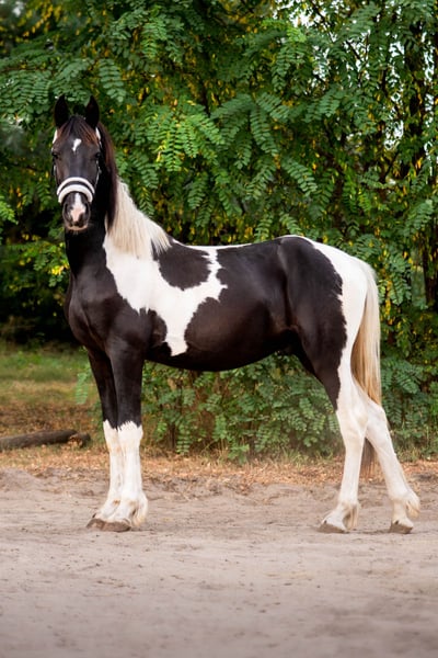 I am selling a promising stallion of the Barock Pinto breed. Voldemort U (for friends, Waldek) is a two-year-old healthy horse with beautiful movement and a nicely even pinto coat. His charm is enhanced by his two-colored mane and tail. He is accustomed to street traffic, agricultural machinery, and dogs. Well-behaved during grooming, regularly turned out to pasture. Waldek would be a good choice for a breeding stallion/sport dressage/safe outdoor excursions. I will sell only to good and responsible hands! Location: Trzebnica 55-100, Lower Silesian Voivodeship Price: 26,000 PLN