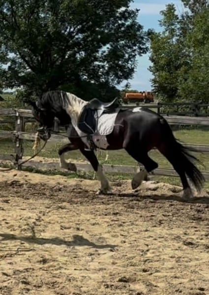 Te koop staat hier een werkelijk prachtige barokke Pinto hengst: rechtstreeks van de fokker! Conquistador is 4 jaar oud, 1,65 m hoog en al uitstekend bereden in enkel- en tweespannen. Hij is volledig verkeers- en wegveilig. Daarnaast is hij dit jaar voorzichtig aangezadeld en toont ook hierin veel inzet. Hij wordt al goed longeerwerk gedaan en je ziet duidelijk de kwaliteit die in hem schuilt. Hij heeft goede bewegingen en een zeer rustige en vriendelijke aard – hij is geen heet paard. Hij kent de uitloopstal en houdt ervan om buiten te zijn! Hij is gezond en beschikt over een paardenpaspoort (zonder stamboom, ingeschreven als barokke Pinto). Meer informatie, foto's en video's stuur ik graag op aanvraag via WhatsApp.