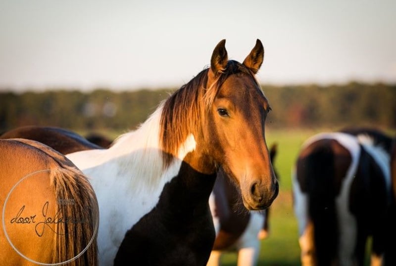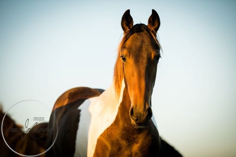 Deze bruinbonte barokpinto hengst is zeer mensgericht. Hij houdt van knuffelen, heeft prachtige aftekeningen en is een absolute lieverd! Hij is iets sportiever gebouwd, maar heeft toch een barokke uitstraling. Zijn moeder is een Friese merrie, zijn vader is een bruine, meer atletische barokpintohengst. We schatten dat hij ongeveer 1,60 tot 1,65 m groot zal worden. Op onze grote stoeterij kunt u kiezen uit veel van onze eigen gefokte paarden. Al onze paarden kennen het allerbelangrijkste in het paardenleven: het kudde-ABC. Wij fokken alleen en trainen niet, dus onze paarden zijn meestal nog helemaal groen en nog niet gewend aan het halster. Mensen en groot verkeer kennen ze wel. Deze mooie jongen is al enigszins bekend met het halster, omdat hij een winter bij vrienden mocht staan om hun veulen gezelschap te houden. Het grote voordeel is dat onze paarden enorm goed gesocialiseerd zijn in de kudde, geen slechte ervaringen hebben gehad en je ze alles kunt leren wat je wilt. Onze paarden hebben en geven veel zelfvertrouwen en leren snel. OP de laatste 5 foto's was hij 1,5 jaar oud. Jaarlijks hebben wij zo'n 40 prachtige barokke Pinto- en Friese veulens te koop vanuit onze familiestoeterij in Nederland. En ook oudere paarden (0-14 jaar), allemaal nog groen en ongetraind maar gewend aan mensen en groot verkeer. Wij fokken veelal zonder stamboekpapier zodat de paarden betaalbaar blijven. Bij ons vindt u zeker uw droompaard. Onze paarden groeien van nature op in grote kuddes en zijn daardoor zeer goed gesocialiseerd. Hier leiden ze een prachtig paardenleven. Vrij op grote weilanden in voorjaar en zomer. In de winter in grote groepsstallen. Een goed karakter, stoer, sterk, gezond en lief zijn voor ons in de fokkerij belangrijke eisen. U kunt ons vinden in Tzummarum, vlakbij Leeuwarden, Nederland, en we kijken ernaar uit u te ontmoeten. Contact: Graag bellen of een Whatsappje sturen. Want we kijken zelden in de mail.