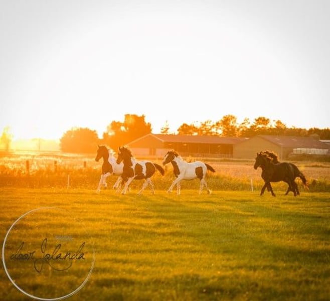 Denna bruna piebald Baroque Pinto hingst är mycket folkorienterad. Han älskar att kela, har vackra markeringar och är en absolut sötnos! Han är lite mer atletiskt byggd, men har fortfarande en barock look. Hans mor är ett Friesian-sto, hans far en brun skäckig, ganska sportig Baroque Pinto hingst. Vi uppskattar att han kommer att bli ca 1,60-1,65 m lång. Vi har ett stort stuteri med många hästar från vårt eget avelsprogram som du kan välja mellan. Alla våra hästar känner till det viktigaste i hästlivet: flockens ABC. Vi föder bara upp och utbildar i princip inte, så våra hästar är normalt sett fortfarande helt gröna och ännu inte vana vid grimman. Den här pojken är dock redan lite bekant med grimman, eftersom han sannolikt kommer att tillbringa en vinter hos vänner som fölvakt. Den stora fördelen är att våra hästar är extremt väl socialiserade i flocken, inte har haft några dåliga upplevelser och kan lära sig allt du vill. Våra hästar har och ger mycket självförtroende och lär sig snabbt. På de senaste 5 bilderna var han 1,5 år gammal. Varje år har vi cirka 40 vackra Baroque Pinto och Friesian föl till salu från vårt familjestuteri i Nederländerna. Och även äldre hästar (0-14 år), alla fortfarande gröna och otränade. Vi föder oftast upp utan stamtavlor så att hästarna förblir prisvärda. Du kommer säkert att hitta din drömhäst hos oss. Våra hästar växer upp naturligt i stora flockar och är därför mycket väl socialiserade. Här lever de ett drömliv som hästar. Fritt på stora ängar på våren och sommaren. På vintern i stora gruppstall. En bra karaktär, cool, stark, frisk och snäll är viktiga förutsättningar för oss i aveln. Du hittar oss i Tzummarum, nära Leeuwarden Nederländerna, och vi ser fram emot att träffa dig. Vänligen kontakta oss: Vänligen kontakta oss via telefon eller whatsapp. Vi tittar sällan på e-post.