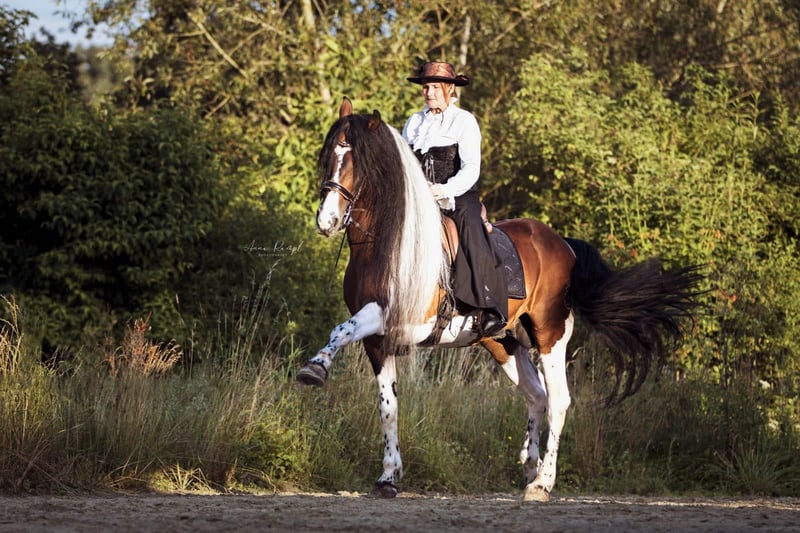 Notre magnifique Azizam séduit non seulement par son apparence, mais aussi par son caractère exceptionnel. Elle grandit dans un environnement adapté, aux côtés d’autres poulains au sein du troupeau. Son frère (voir photos) est également à vendre. Azizam est le fruit d’un croisement entre une magnifique et très douce jument espagnole et le cheval de rêve Santiago (dernières photos). Santiago, qui possède ses papiers, est Mr. Cool 😎, et il transmet cette attitude à ses descendants. Plusieurs portes s’ouvrent pour Azizam, que ce soit en tant que cheval de loisir, en Working Equitation, dans le Western ou en compétition, elle saura sans aucun doute suivre sa voie. Elle recherche actuellement son partenaire deux-pattes idéal pour l’accompagner dans son avenir. Azizam sera vendue uniquement à des personnes expérimentées et soucieuses du bien-être animal, dans un environnement respectueux. Prix actuel pour l’hiver : 6000 €