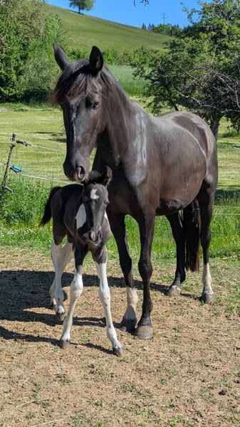 Unsere wunderschöne Azizam besticht nicht nur durch ihre Optik, sondern auch durch ihren traumhaften Charakter. Sie wächst artgerecht mit anderen Fohlen in der Herde auf. Auch ihr Bruder (siehe Bilder) steht zum Verkauf. Azizam ist eine Anpaarung aus einer wunderschönen, super lieben Spanier Stute und dem Traumhengst Santiago (letzte Bilder) . Santiago(volles Papier) ist Mr. Cool 😎 und genau das gibt er auch an seine Nachkommen weiter. Für Azizam stehen einige Türen offen, ob als Freizeitpferd, in der Working Equitation, im Westernbereich oder im Showbereich, sie wird definitiv ihren Weg gehen . Hierfür sucht sie nun noch ihren passenden Zweibeinigen Partner. Azizam wird nur in artgerechte Haltung verkauft und an Menschen mit Pferdeverstand!!! Aktuell zum Winterpreis von 6000€