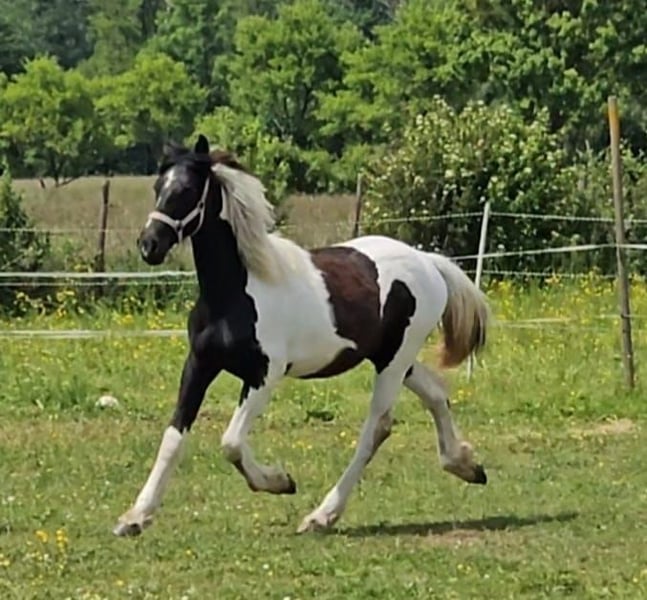 Chicke, een 2-jarige Barokpinto merrie, geboren in juli 2024, te koop