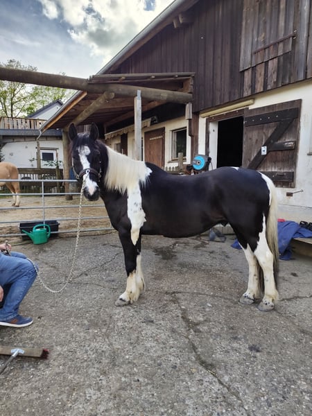 For sale: Baroque Pinto Gelding – Pinto, born in 2011, height 15.8 hh This charismatic Baroque Pinto gelding is looking for his person. Born in 2011, he impresses with his friendly and fearless nature. He loves outdoor riding and is very well-behaved in the field. In the arena, he requires a confident and leading rider, but with the right handler, there’s plenty of potential for training and enjoyment. Jack has PSSM2. With proper feeding and management, this is not an issue. He can be turned out on pasture during the day but needs a rest in the stable at night. He is familiar with both open stall and box stall setups. He was in training for four months with Dennis Käufer. I am looking for a loving new home where he can have his own person :) If you are interested or would like more information, please feel free to contact me. Viewing and trial riding are possible by arrangement.