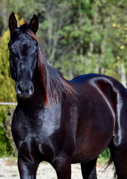 Onze Nightshift Devil M. is geboren in mei 2023. Hij is heel lief, dapper, vriendelijk en nieuwsgierig. Met zijn bewegingen en rustige karakter is hij uitstekend geschikt voor dressuur. Zijn verwachte stokmaat is 170. Hij leeft in de open stal in een grote kudde, maar hij is ook gewend aan boxstalling. Hij laadt makkelijk op de trailer en rijdt als een pro. We kunnen transport overal in de EU organiseren. Voor meer informatie bel of sms (via WhatsApp) +386 31 554 107 (Miha). We spreken Engels, Duits, Sloveens en Kroatisch.