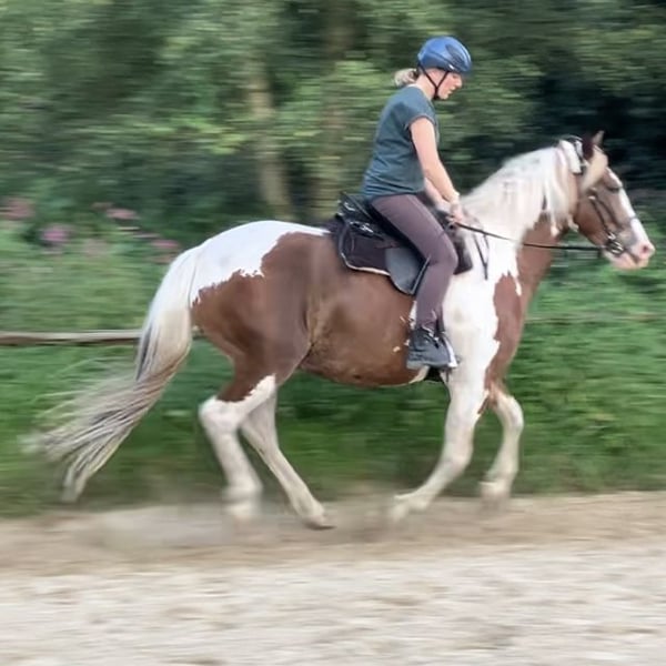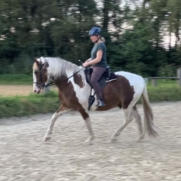 For health reasons, I am giving up my 8-year-old baroque Tinker mix. He has been in my possession for 5.5 years. He is a leisure riding horse, works in all three gaits in the arena, and can perform some lateral movements at the walk (level A/B). He is familiar with groundwork. His temperament is that of a relaxed, calm horse. He is regularly exercised in the field and is accustomed to cars, agricultural machinery, etc. He goes out alone and in a group. He is easy to keep and cannot tolerate haylage; I would prefer to discuss this in person... He is herd-compatible, loads well, and has no issues with the veterinarian or hoof care. His teeth were done in August; he is regularly vaccinated, dewormed, and has been osteopathically treated/checked. If needed, his equipment can be purchased as well. Home before price! No sale for box confinement!