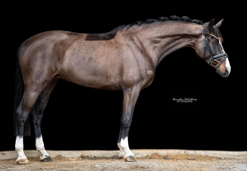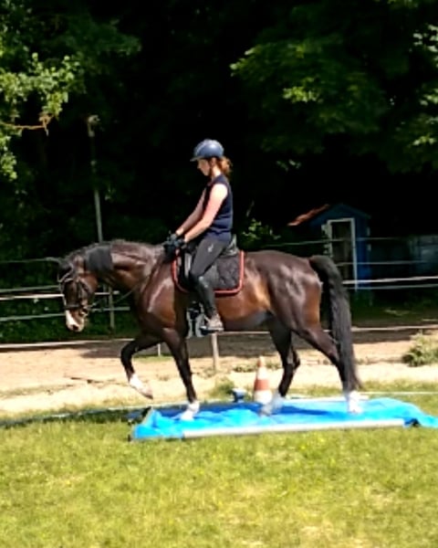 ⭐ Sissy ⭐ – talentierte Dressurstute mit Allroundqualitäten sucht Bestplatz Schweren Herzens biete ich meine wunderschöne Bayerische Warmblutstute Sissy zum Verkauf an. Aufgrund von Zeitmangel kann ich ihr aktuell nicht mehr gerecht werden, weshalb sie momentan nicht voll im Training steht und daher weit unter Wert abgegeben wird. Mir ist ein absoluter Bestplatz wichtiger als alles andere. Sissy ist 12 Jahre alt (2014) und hat ein Stockmaß von ca. 167 cm. Sie ist eine elegante dunkelbraune Stute mit viel Ausdruck, Ausstrahlung und drei überdurchschnittlichen Grundgangarten. Röntgenbilder von 2021 liegen vor, alle Top und ohne Befund. Abstammung: Ampere x Rivero. Sie ist Dressur bis Klasse L ausgebildet und konnte sich bereits auf Turnieren platzieren. Im Springen befindet sie sich auf E-Niveau, zeigt auch hier Talent und Vermögen. Jedoch sehe ich sie eher als Freizeitpferd, da der Turnierstress, einfach nicht ihrs ist. Insgesamt ist sie ein tolles Allroundpferd mit Schwerpunkt Dressur. Bei der Bodenarbeit ist sie super motiviert und für jeden Spaß zu haben. Sissy ist sehr fein zu reiten und angenehm zu sitzen. Sie benötigt jedoch einen gefühlvollen, sicheren Reiter, der ihr Sicherheit gibt und für ausreichend Abwechslung sorgt. Daher ist sie kein Anfängerpferd. Mit der richtigen Bezugsperson zeigt sie sich motiviert und leistungsbereit. Auch im Gelände ist sie brav und zuverlässig, das liebt sie wirklich sehr. Jedoch lieber in der Gruppe, da sie mir alleine nicht immer vom Hof geht. Zudem ist sie eingetragene Zuchtstute und brachte bereits ein sehr schönes Fohlen, wodurch sie auch züchterisch interessant ist. Sie ist verlade- und schmiedefromm, ekzemfrei und besitzt selbstverständlich einen Equidenpass. (Allerdings seit sie bei mir ist, (April 2021,) nicht mehr weg gefahren mit dem Hänger) Aktuell steht sie im Offenstall, kennt aber auch Boxenhaltung problemlos und ist Barhuf. Fürs Probereiten verlange ich 50€, das später im Kaufpreis verrechnet wird um den Reittourismus einzugrenzen. Reitvideo vorhanden. Zubehör kann auf Wunsch mitgegeben werden, da werden wir uns Preislich einig. Dressur + Springsattel usw.