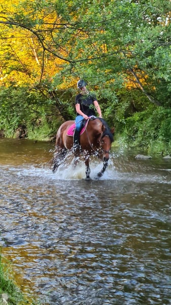 Je propose ma magnifique jument bayrische d'origine, âgée de 16 ans, à vendre. Je recherche une nouvelle famille ou une nouvelle place d’élevage avec pâturage quotidien + box paddock / box d’élevage actif (place avant le prix) !! Miss est une jument très motivée et volontaire au travail. Elle prend beaucoup de plaisir en dressage, car elle est facile à manier et réagit très finement aussi bien au poids qu’aux jambes. Même sans selle, elle est agréable à monter grâce à ses allures confortables. Elle possède sans aucun doute un potentiel pour le saut d’obstacles (elle a déjà été beaucoup engagée en compétition jusqu’au niveau M, y compris en concours). Pour des raisons d’âge, je ne souhaite pas la confier à des cavaliers en compétition. (Actuellement, ma partenaire de monte lui a passé quelques petites épreuves et a participé à quelques petites sorties en concours, ce qui ne poserait aucun problème). De petites balades en terrain seul ou avec le bon partenaire sont tout à fait possibles. Elle est toujours facile à manipuler. Elle connaît aussi l’eau, car notre terrain comprend un petit ruisseau où l’on peut monter. Elle connaît également le travail à la longe. N’hésitez pas à me contacter par message privé ou via WhatsApp au +49 176 32589270 si vous êtes intéressé.