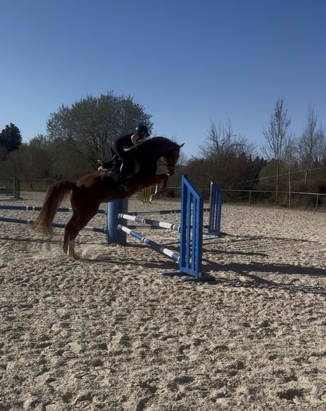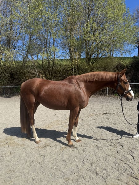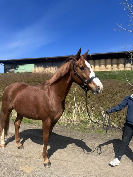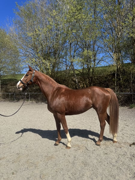 Zum Verkauf steht diese wunderschöne Stute. Grandlibera ist 2017 geboren, hatte bereits 2 Fohlen und ist ausgezeichnet mit der Staatsprämie. Aktuell wird sie gerade von mir wieder antrainiert und zeigt sich hier brav, unerschrocken und eifrig. Im Umgang ist sie unkompliziert, kennt alles und macht zuverlässig mit. (Longe, Spazieren, Ausreiten, Springen, Dressur usw.) Sie ist sehr fein in der Hand und benötigt daher einen Reiter welcher ausbalanciert sitzt und mit weicher Hand reitet. Stockmaß circa 162cm Barhuf *2017 Cuba Libre x Ars Vivendi Bei Interesse gerne melden. 0151 55796957 Marie Hanus