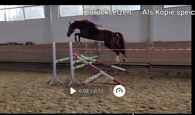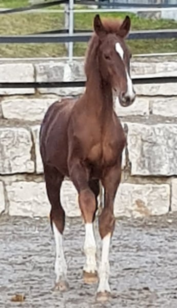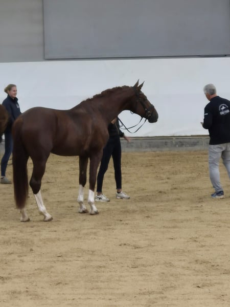 Viktorinox is a very impressive 4-year-old dark chestnut stallion. His pedigree - Vitalis x Donnerschlag - speaks for itself. His mother, the state premium mare Florentine, has produced 17 foals in her long breeding career. Most of her offspring were awarded gold premiums as foals, including several daily winners. She passed on significantly above-average movement, confidence, and courage to all her descendants. Almost all of them have been successfully used in competitive sports, interestingly not only in dressage but also in show jumping and eventing. High placements in dressage horse tests were common among her offspring. They achieved victories and high placements in dressage up to class M, in show jumping tests of classes A and L, as well as in cross-country and eventing tests. One of her sons by the dressage stallion Sir Shiwago won the Southern German Championship for five-year-old eventing horses in the final cross-country test with a score of 9.0. He qualified for the Bundeschampionat of eventing horses. Viktorinox demonstrates the versatile talent of his mother. He is confident in his appearance, brave, and self-assured. He is very rideable, light-footed, and despite his dynamic movement, he is easy to sit. Under saddle, he shows diligence and great discipline, even in the presence of other stallions or mares. While his dressage talent is clearly in the foreground, he also possesses jumping ability and stamina. We would very much like to sell him as a stallion for a combined career in sport and as a sire. He has already completed the HLP with an overall average above eight. As a sire, he is primarily interesting for dressage but also for eventing. In this case, we would be willing to remain involved with him. Alternatively, he can be sold - castrated if desired - as a riding horse for a sporting career. Here, the dressage talent is clearly in the foreground. He is already trained to dressage horse A-level and is familiar with the requirements of DPf L. He is healthy, robust, and has good X-ray images. Videos available upon request. Unfortunately, Ehorses was unable to load them.