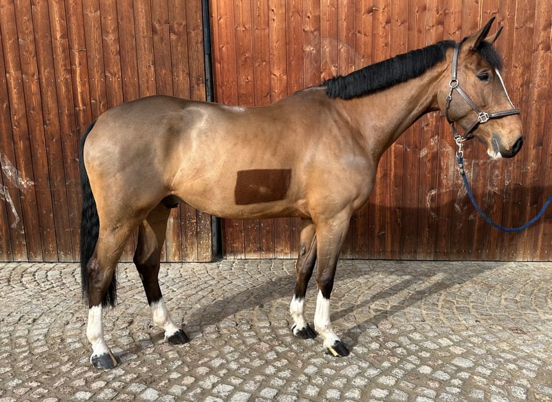 Na sprzedaż piękny niemiecki czworobok wierzchowy, urodzony w 2020 roku. Jego jasnobrązowa sierść i wzrost 170 cm wyróżniają go eleganckim wyglądem i przyjaznym usposobieniem. Jeszcze trochę zielony w zakresie podstawowej jazdy, ale bardzo odważny na skokach, wszechstronny skoczek wykazuje dużą talent i gotowość do pracy na parkurze. Jest dobrze wytrenowany i nadaje się zarówno dla ambitnych jeźdźców rekreacyjnych, amatorów, jak i do regularnych startów w konkursach. Dzięki odpowiedniej energii jest przygotowany na dłuższy weekend konkursowy, ale nie jest to koń dla początkujących jeźdźców. W razie zainteresowania chętnie udzielę dodatkowych informacji i umówię na jazdę próbną. Koń, który zachwyca swoim świetnym charakterem!