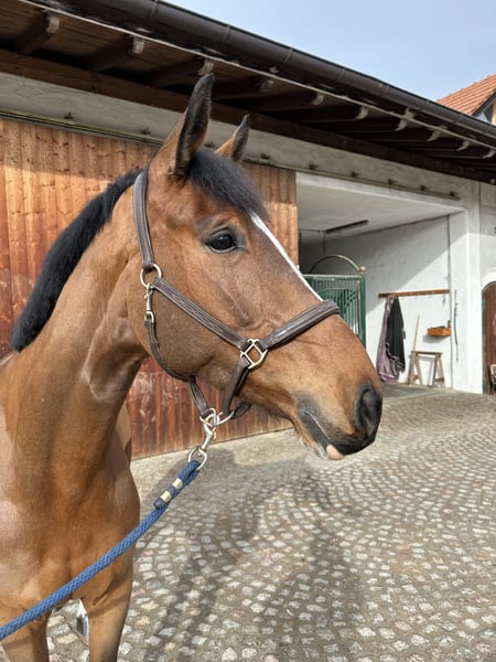 In vendita un magnifico stallone di sangue bavarese, nato nel 2020. Con il suo mantello castano chiaro e un'altezza al garrese di 170 cm, conquista per la sua presenza elegante e il carattere amichevole. Ancora un po' verde nell'addestramento, ma molto coraggioso sui salti, il versatile saltatore mostra grande talento e disponibilità nel percorso di salto. È ben addestrato e adatto sia a cavalieri amatoriali ambiziosi, sia a dilettanti, sia a chi partecipa regolarmente alle gare. Dotato di energia sufficiente, è pronto anche per un lungo fine settimana di gare, ma non è un cavallo adatto ai principianti. Per ulteriori informazioni e per una prova in sella, sono a disposizione. Un cavallo che entusiasma grazie a un carattere fantastico!