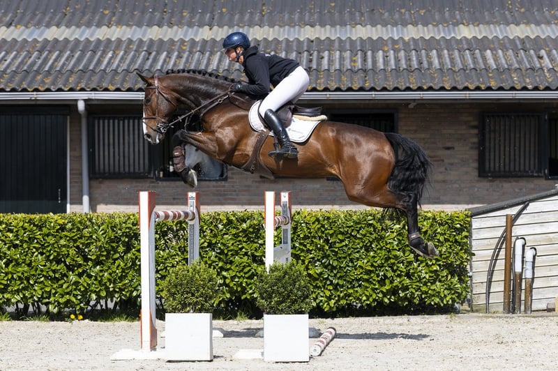 Horse with 1.40m experience. Agacetto is a sport horse with a good attitude. Willing to work, eager and sharp, with plenty of scope. Easy to ride. Has a good canter and shows scope with ease. Easy to steer, not spooky and gives a good feeling over the jump. Suitable for a competitive junior or young rider. Strong points: excellent attitude and carefulness. Sire Aganix du Seigneur competed at 1.60m level and is a son of Ogano Sitte (1.60m), from the influential Darco (1.60m) line. He is known for passing on scope, technique and attitude and has already produced multiple horses at 1.60m level. Dam The dam Heiderose is a daughter of Concetto I (1.30m) and brings proven sport genes through Contender and Furioso II. Damline The damline is strong and versatile. From the direct line we see several horses at level such as Larry Incipit (1.50m), Quadoro (1.40m) and Lazarus 11 (1.40m). We also see Agacetto himself at 1.30m level. In the second line we find among others Casper 150 at 1.60m level, as well as multiple horses at 1.30m–1.40m level. The line shows a consistent production of sport horses from 1.30m up to the highest level.