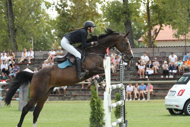 Yegua moderna y enérgica de salto, ideal para competición, con una excelente mentalidad y mucha potencia. Es una yegua con carácter, sensible y con buen temperamento, pero honesta y de buen corazón. No es espeluznante, no se fija en los obstáculos y siempre quiere saltar y ayudar a su jinete. Es una ejemplar de sangre, de calidad, con alcance y verdadera disposición para trabajar. Ha competido hasta 1,40 m y ha saltado hasta 1,25 m con mi hija júnior. Es una yegua de deporte auténtica, que ofrece mucha potencia y calidad, por lo que es más adecuada para un jinete motivado y confiado que desee progresar con una yegua que disfruta saltar y siempre intenta llegar al otro lado de la valla. Contacto (WhatsApp): +36-20-396-8696