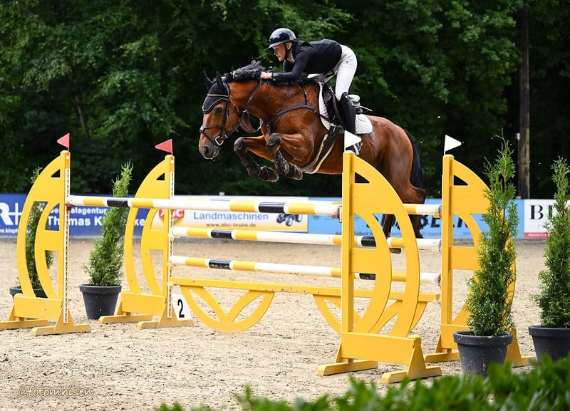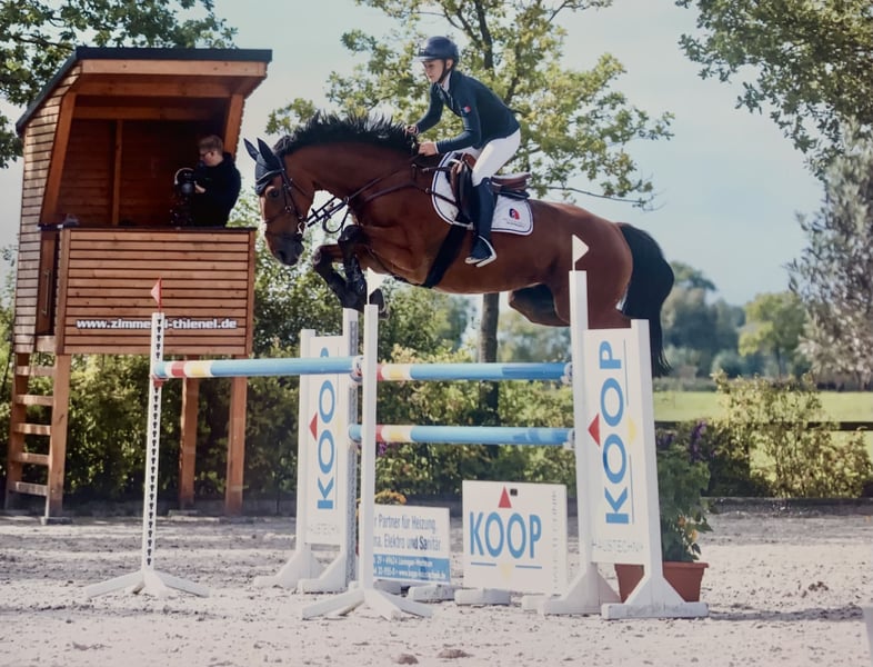 Top Children-/ Junioren-/ Amateur- & Amazonenpferd ! Zum Verkauf steht der liebenswerte 13-jähriger Wallach von Vigo D'Arsulles x Usha van't Roosakker (Chin Chin). Beide international bis 1,60m erfolgreich. Gezogen wurde er bei Stephex Stables, als Junghengst gekört, mit bereits erfolgreichen Nachkommen (u.a. Gesha de Pomme, siegreich bis 1.45m). ✔️ siegreich bis 1.25m, vielfach platziert bis 1.35m, Erfahrung bis 1.40m mit Juniorin ✔️einfach zu bedienen, mit angenehmen Grundtempo ausgestattet, geht auch höheren Springen auf Wassertrense und hilft auch mal mit der Distanz ✔️ unkompliziert im täglichen Umgang/ Training, verträglich in der Herde (auch mit Stuten) Eine aktuelle, makellose Aku liegt vor. Seit Jahren ist er immer gesund und ohne Ausfälle.